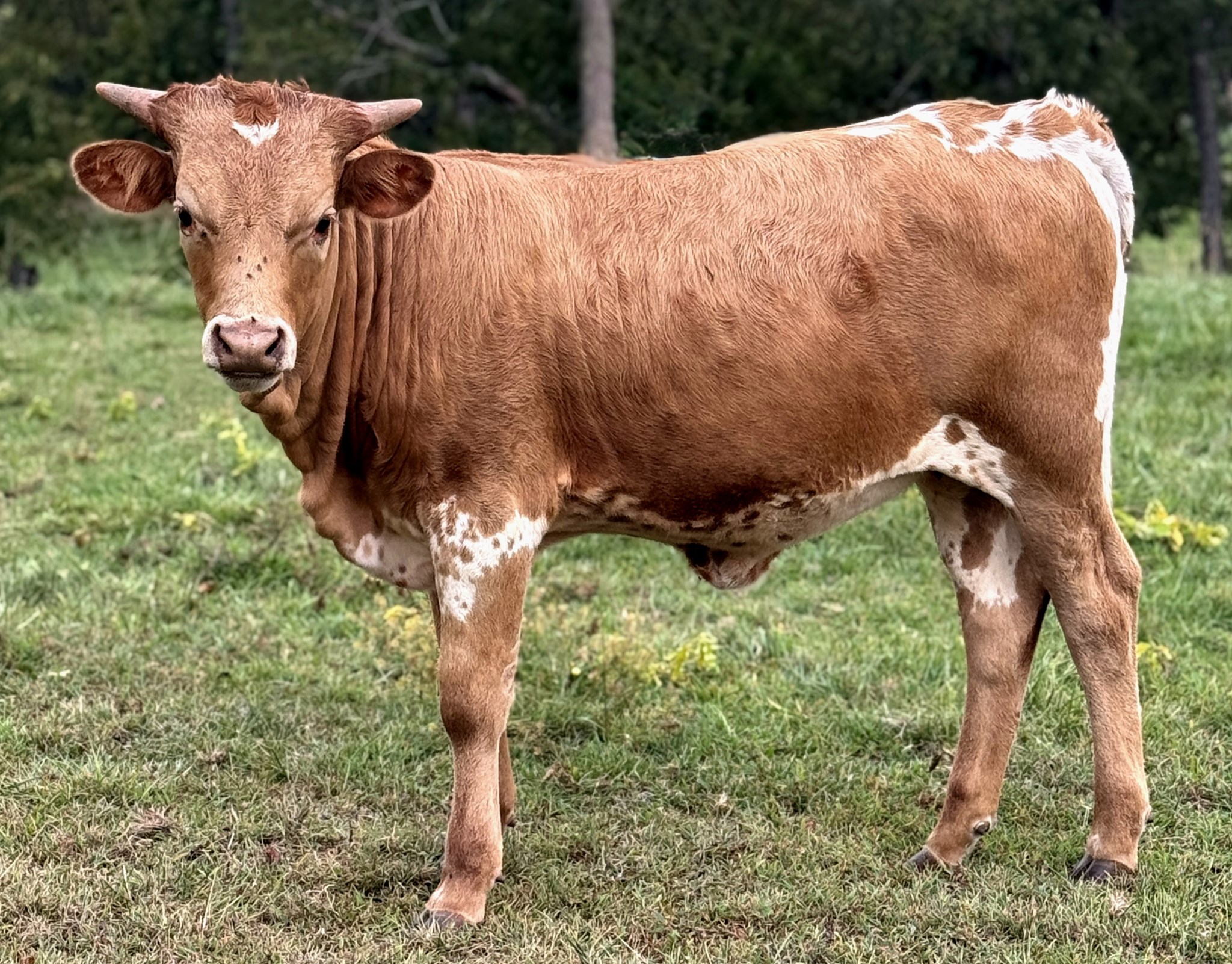 Beautiful heifer sired by the 2025 World Record 109” TTT and 132” Total Horn Bull, WT Kid Rock. Excited to bring these great genetics to our herd!