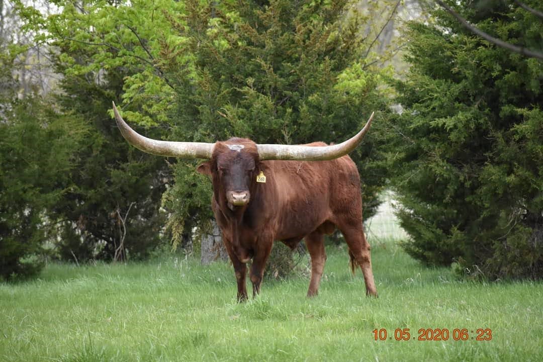 RR Escondido Red is already a longhorn legend. He currently ranks second in Total Horn for the breed among bulls with 115” of total horn. Semen is available