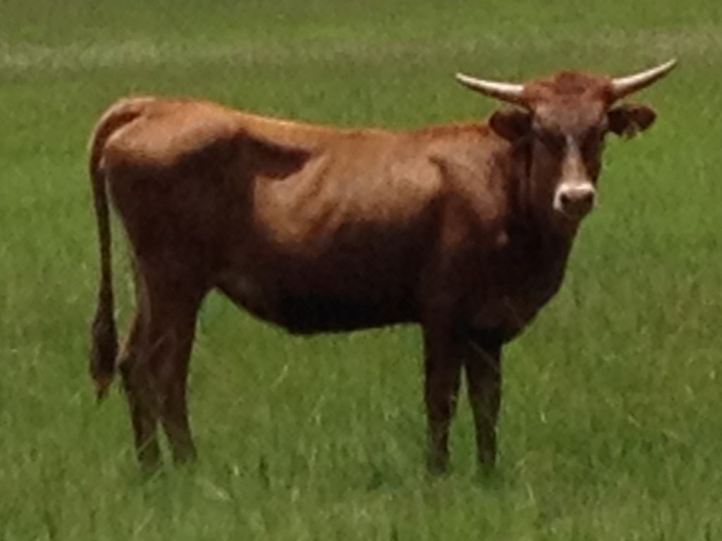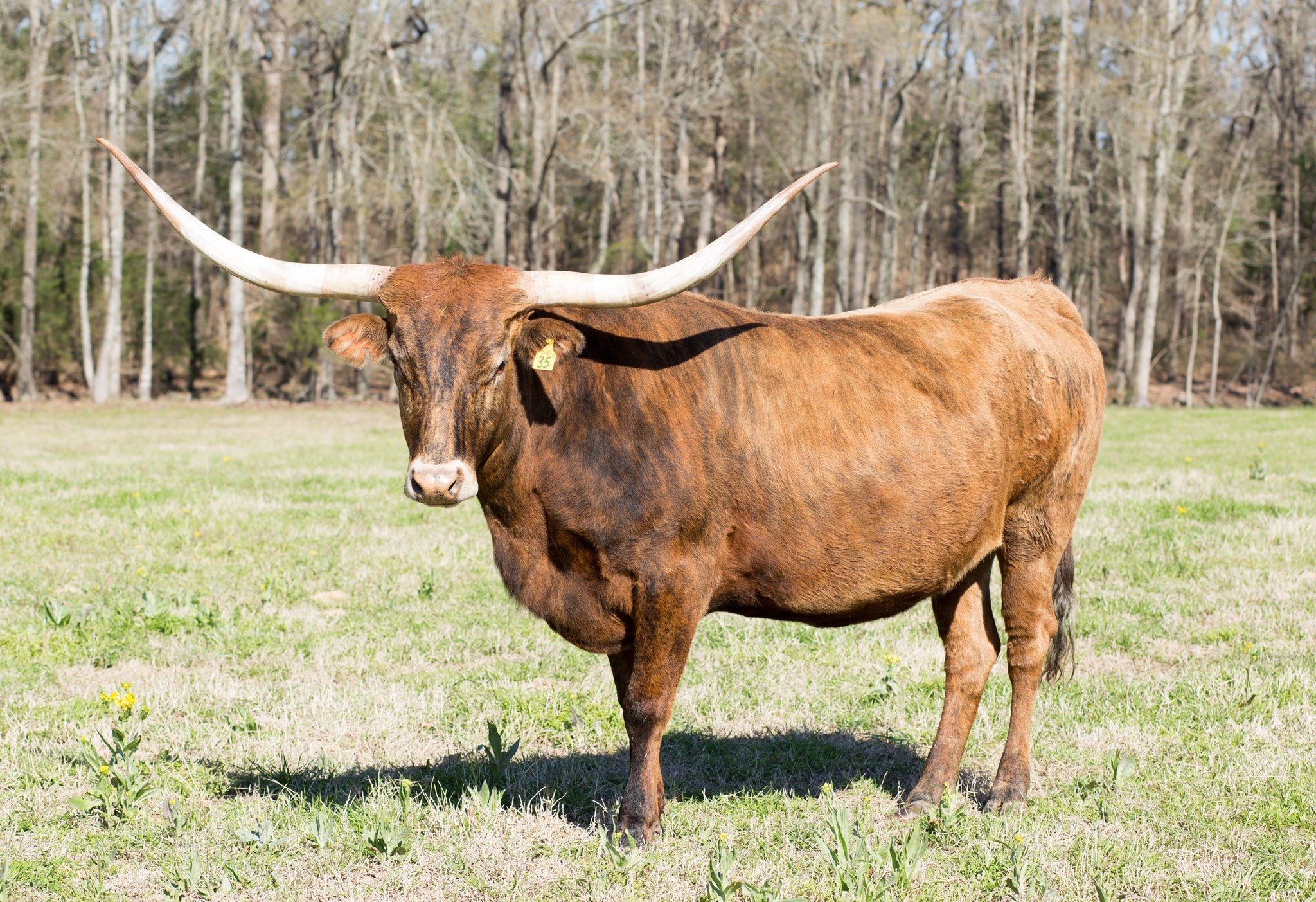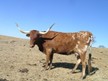Beautiful bright red brindle, thick body, developing great horns and bases! Sire is the colorful Drag Iron, with 85"TTT horn, son of WS Jamakizm! Dam's pedigree also traces back to WS Jamakizm and ZD Kelly! Dam has unique backwards twist horns!