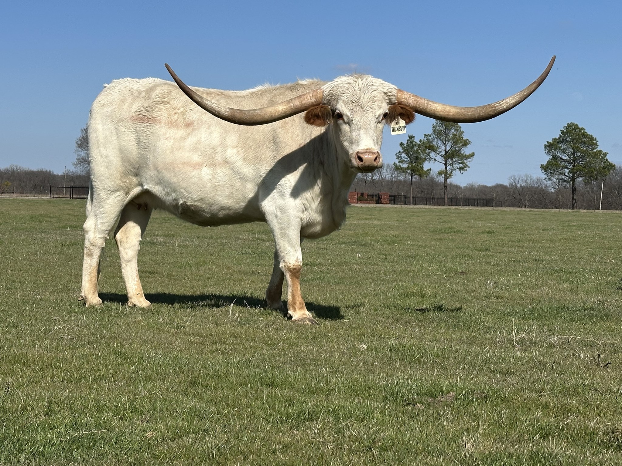 Jamin's Hallie is a flashy young cow that is extremely well bred. Her sire is Revelation, a combination of the famous Sittin Bull by the impeccable Max's Red Rose (89"). Her dam is WS Jamin, a full sister to the famous WS Rainbow (82.0625") cow, who is a Julio's Thunder daughter out of Jamoca, the mother of Jamakizm. Talk about a jam packed pedigree of famous animals. She has half sisters who have sold at auction for over $15,000 a piece. Jamin's Hallie has given us a beautiful calf every year and is currently bred to DSCC Cowboy Flair for a Fall 2022 calf.