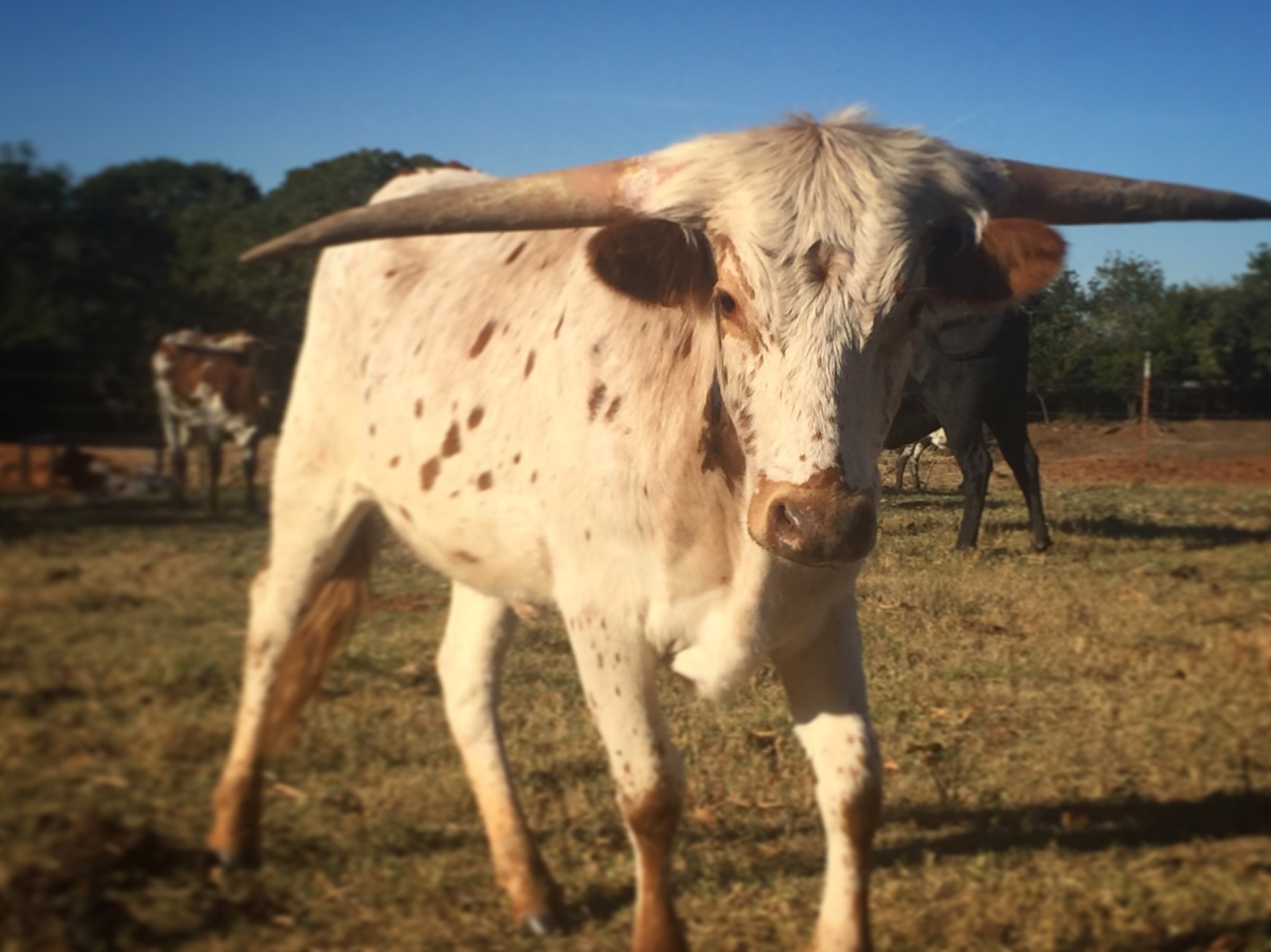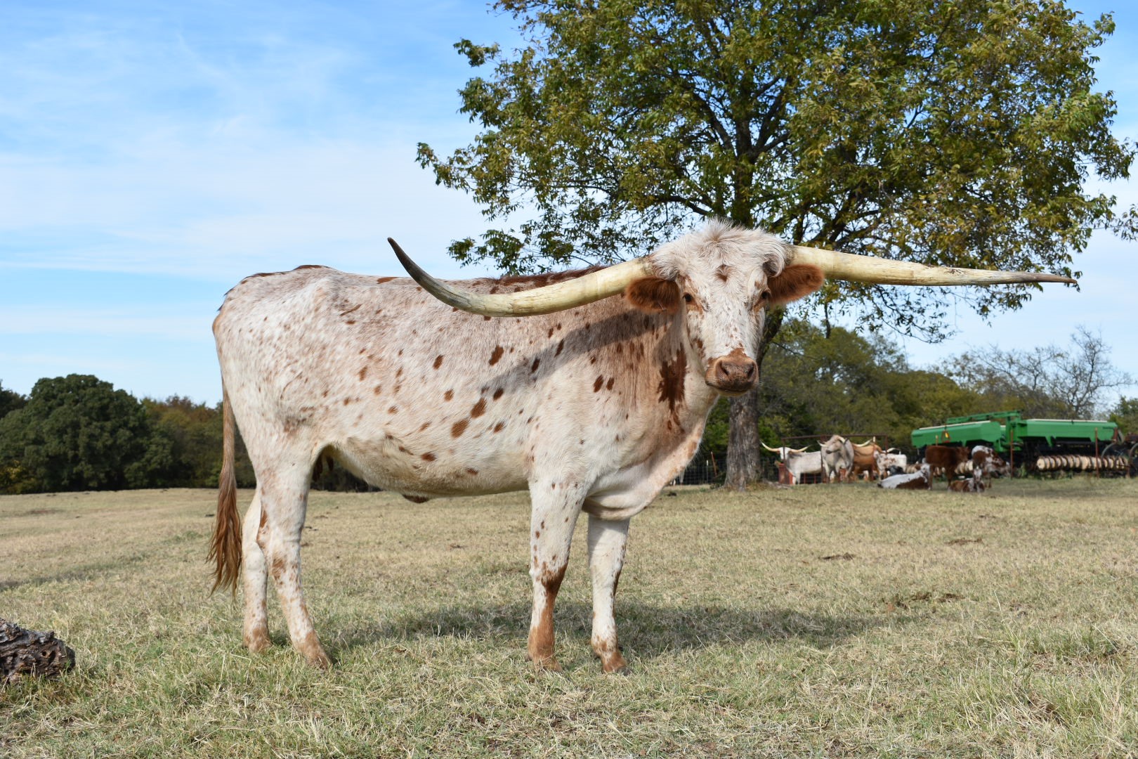 Very Lateral horned lacey colored cow out of Dora Thompson’s stellar program. A stacked bred Sittin’ Bull granddaughter, very unique and putting on horn at the rate I put sugar in my tea! She is exposed back to Riverforks Rais'N for a fall calf that should be phenomenal! She offers you great genetics, conformation, horn and color. Millennium Futurity Eligible.