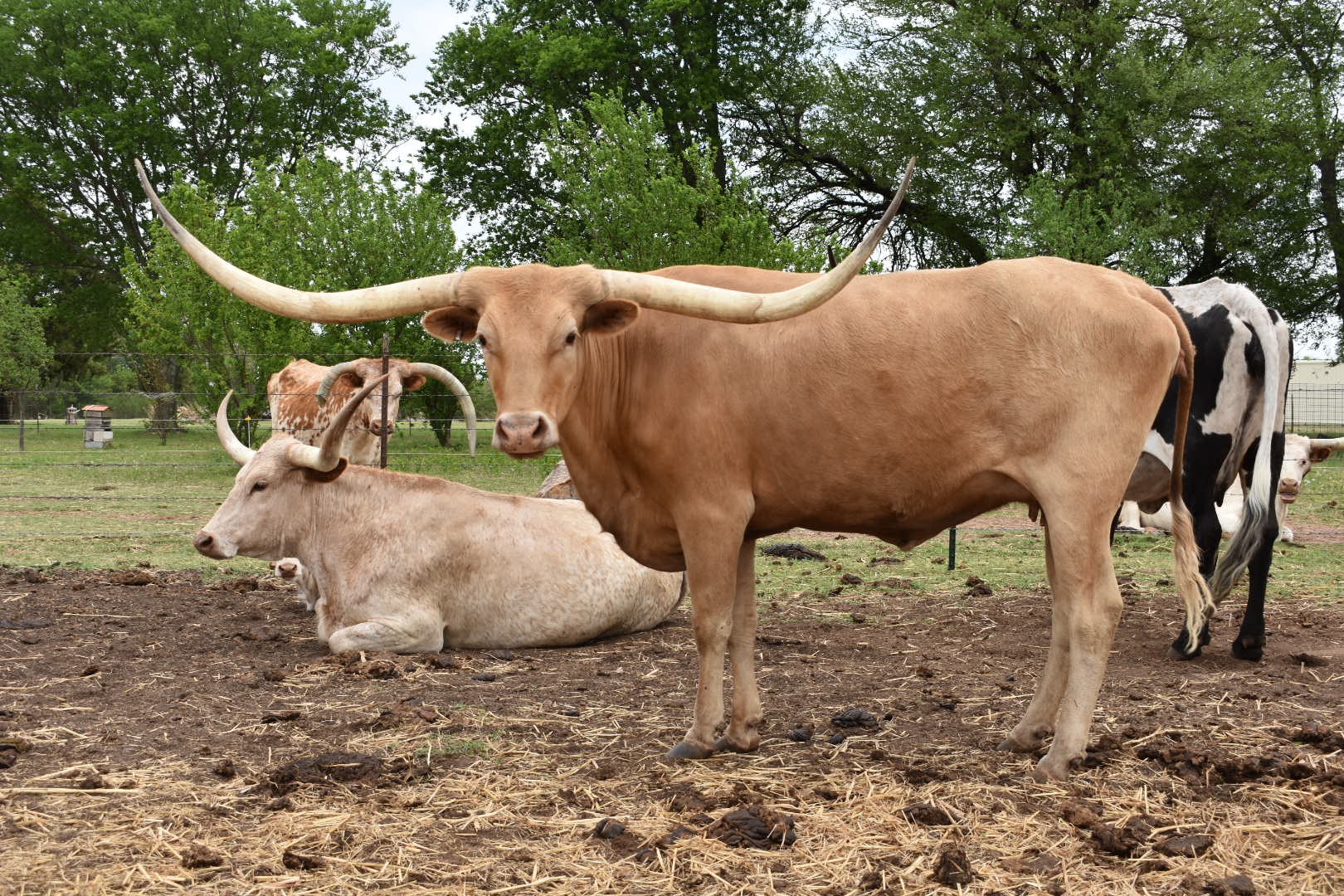 Very nice huge horned daughter of one of our best cow family's. She projects into the 90's TTT. Her Dam is well over 87” TTT and her sire is an LWC Bronze winner. She has a unique buckskin color and an easy-going calm demeanor. Currently raising a bull calf by Jest Iron and being exposed back to Bwana Chex for a fall calf. Millenium Futurity Eligible.